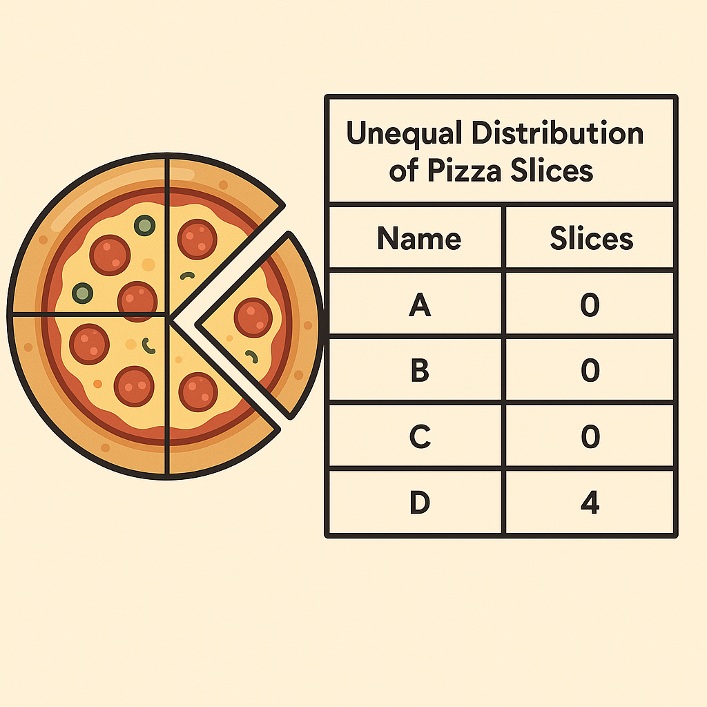 예를 들어 친구 4명이 피자 조각을 0, 0, 0, 4개 먹었다면: